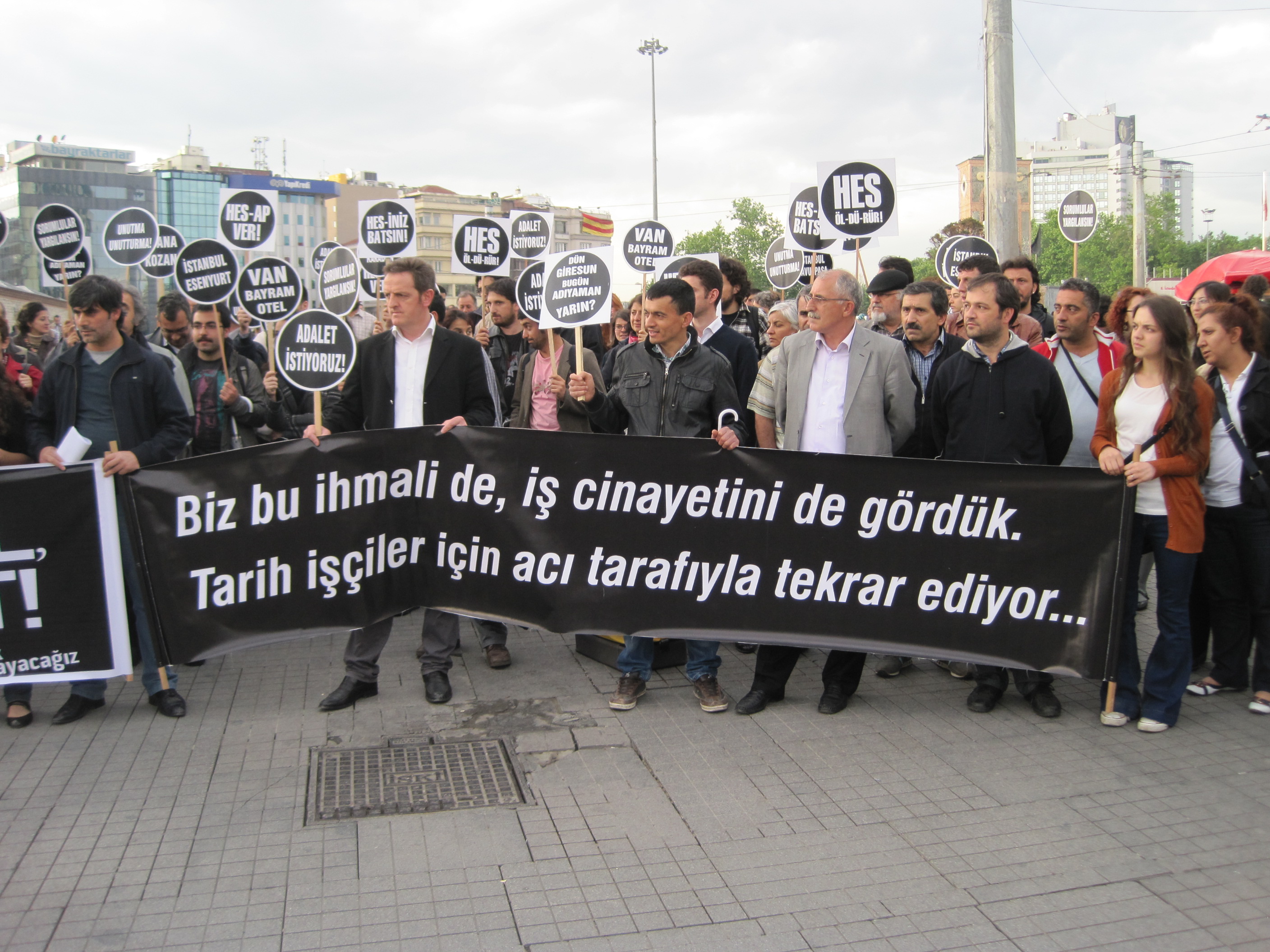 Geçtiğimiz Pazar (20.05.12) günü sitemizde de çağrı yaptığımız üzere, yakınlarını iş kazalarında kaybeden aileler “Artık Yeter” demek için Taksim meydanında bir araya geldi. Kimi ailelerin çocuklarıyla, kimilerinin kaybettikleri yakınlarının fotoğraflarıyla geldikleri protestoda, önce Van...