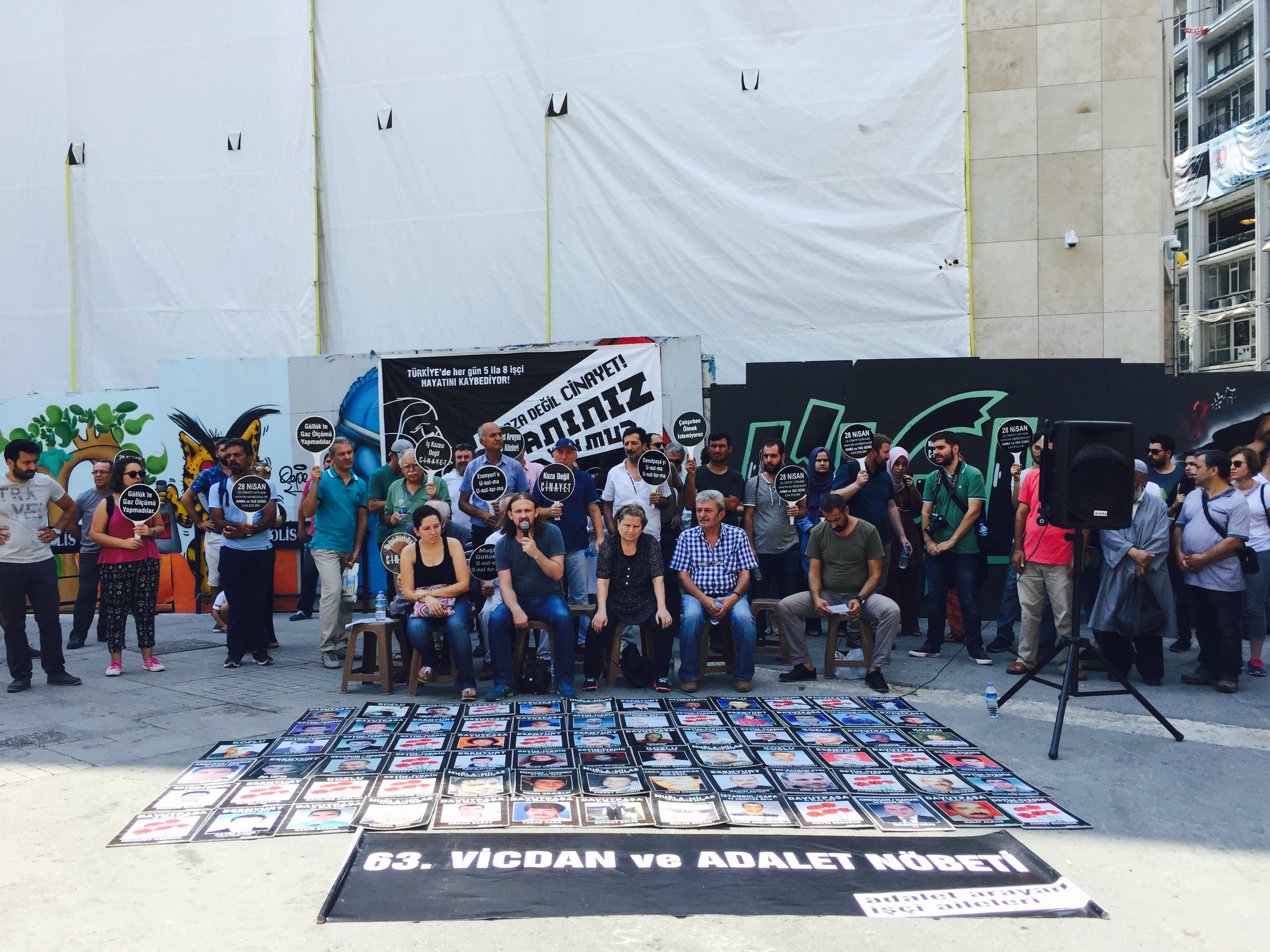 Bugün Galatasaray’da, Vicdan ve Adalet Nöbeti’nin 63. sünü tuttuk. Basın açıklamasını Adalet Arayan İşçi Aileleri’nden Sema Erdem okudu. İlk olarak Abdülhalim Demir söz alarak meslek hastalıklarından bahsetti. Kendisi de eski bir kot kumlama işçisi...