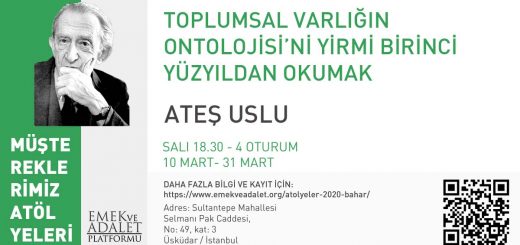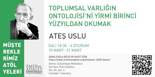 Üretim, Yeniden Üretim, Düşünce ve Yabancılaşma: Toplumsal Varlığın Ontolojisi’ni Yirmi Birinci Yüzyıldan Okumak – Ateş Uslu 10 -17 – 24 – 31 Mart Salı 18.30 Bu atölyede Marksist filozof György Lukács’ın son eseri olan Toplumsal...