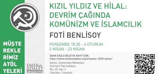 İçerik daha sonra güncellenecektir. Kızıl Yıldız ve Hilal: Devrim Çağında Komünizm ve İslamcılık – Foti Benlisoy 2 – 9 – 16 – 23 Nisan Perşembe 18.30 İçerik daha sonra güncellenecektir.