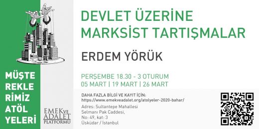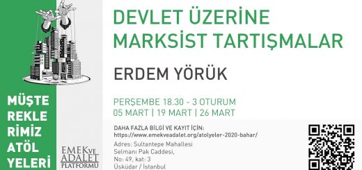 Devlet Üzerine Marksist Tartışmalar – Erdem Yörük 5 – 19 – 26 Mart Perşembe 18.30 Devletin ne olduğu, sosyolojinin ve özellikle de siyaset sosyolojisinin ana tartışma konularından birisi. Bu konu, Marksist düşünürler ve sosyal...