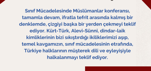 İşçinin Kendi Partisi ile ortak düzenlediğimiz Sınıf Mücadelesinde Müslümanlar konferansında sınıf mücadelesinin imkanlarını ve bu mücadelede müslümanların konumunu tartışmaya çağırıyoruz. 12 Şubat’taZübeyde Ana Kültür Merkezi’nde buluşalım! Çağrı metnimiz: 100 yılını, ‘birlik ve beraberliğe en...