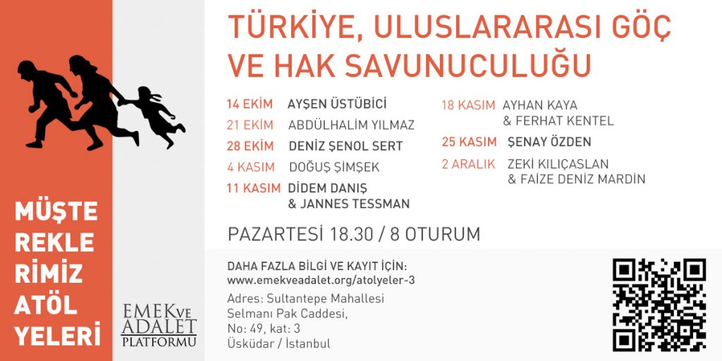 Emek ve Adalet Platformu, Müştereklerimiz Atölyeleri kapsamında göç konusuna ilgi duyan kişilerle hep birlikte düşünmek, konuşmak ve öğrenmek için sekiz haftalık bir göç atölyesi düzenledi. Bu atölye kapsamında her hafta farklı konulara odaklanıldı. Her hafta farklı konulara odaklanılıyor olması katılımcıların haftadan haftaya farklılık göstermesine neden oldu. Atölyede ilk bir saatte hocaların anlatılarına ve sunumlarına yer verilirken diğer bir saatte ise katılımcıların sorular sorması ve düşüncelerini ifade etmesi sağlandı. Katılımcıların da aktif olarak bu atölyenin bir parçası olması birlikte öğrenme ve düşünmeyi daha da kolaylaştırdı. İlk haftalarda daha çok temel konulara ve bazı temel kavramlara odaklanılırken ilerleyen haftalarda gelen kişilerin (hocaların) saha çalışmaları, göçmen ve mültecilerle dayanışmanın yolları ve dayanışma pratikleri konuşuldu.