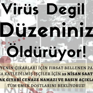 29 Nisan’da gerçekleştirdiğimiz, pandemi boyunca öldürülen işçiler için kılınan gıyabi cenaze namazı ve iktidarın fırsata çevirdiği salgın yönetimine dair basın açıklamamız ardından Ali Bal’ın kaleme aldığı, 1 Mayıs’ın, faaliyetimizin ve emek mücadelesinin düşündürdükleri üzerine...