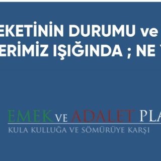 İşçi Emekçi Birliği’nin çağrısıyla yapılan “Sınıf Hareketinin Durumu ve Deneyimlerimiz Işığında; Ne Yapmalı?” konferansında arkadaşımız Betül, Emek ve Adalet Platformu adına bir konuşma yaptı. Konuşmanın yazılı halini ilginize sunuyoruz. Sınıf mücadelesinin Türkiye yakın tarihinde...