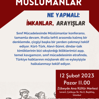 İşçinin Kendi Partisi ile ortak düzenlediğimiz Sınıf Mücadelesinde Müslümanlar konferansında sınıf mücadelesinin imkanlarını ve bu mücadelede müslümanların konumunu tartışmaya çağırıyoruz. 12 Şubat’taZübeyde Ana Kültür Merkezi’nde buluşalım! Çağrı metnimiz: 100 yılını, ‘birlik ve beraberliğe en...