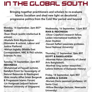 14-18 Eylül tarihlerin arasında internet üzerinden ve ingilizce olarak gerçekleştirilen Islamic Socialism in the Global South (Küresel Güneyde İslami Sosyalizm) isimli seminer serisinin, İhsan Eliaçık, Melvyn Ingleby ve platformumuz üyelerinden Mustafa Emin Büyükcoşkun’un katılımıyla gerçekleşen...