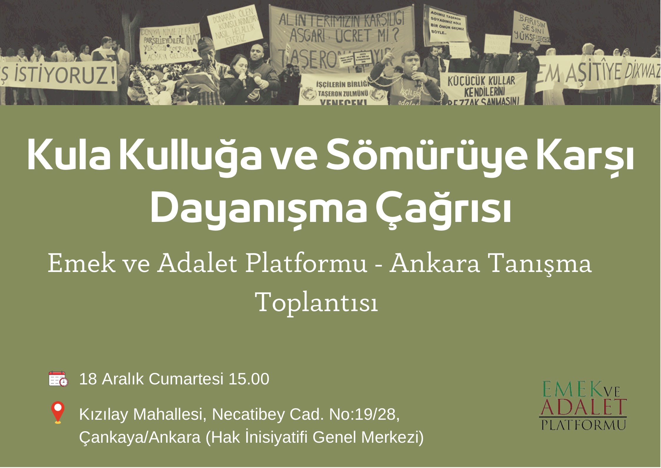 Kula Kulluğa ve Sömürüye Karşı Dayanışma Çağrısı: Ankara Tanışma Toplantısı