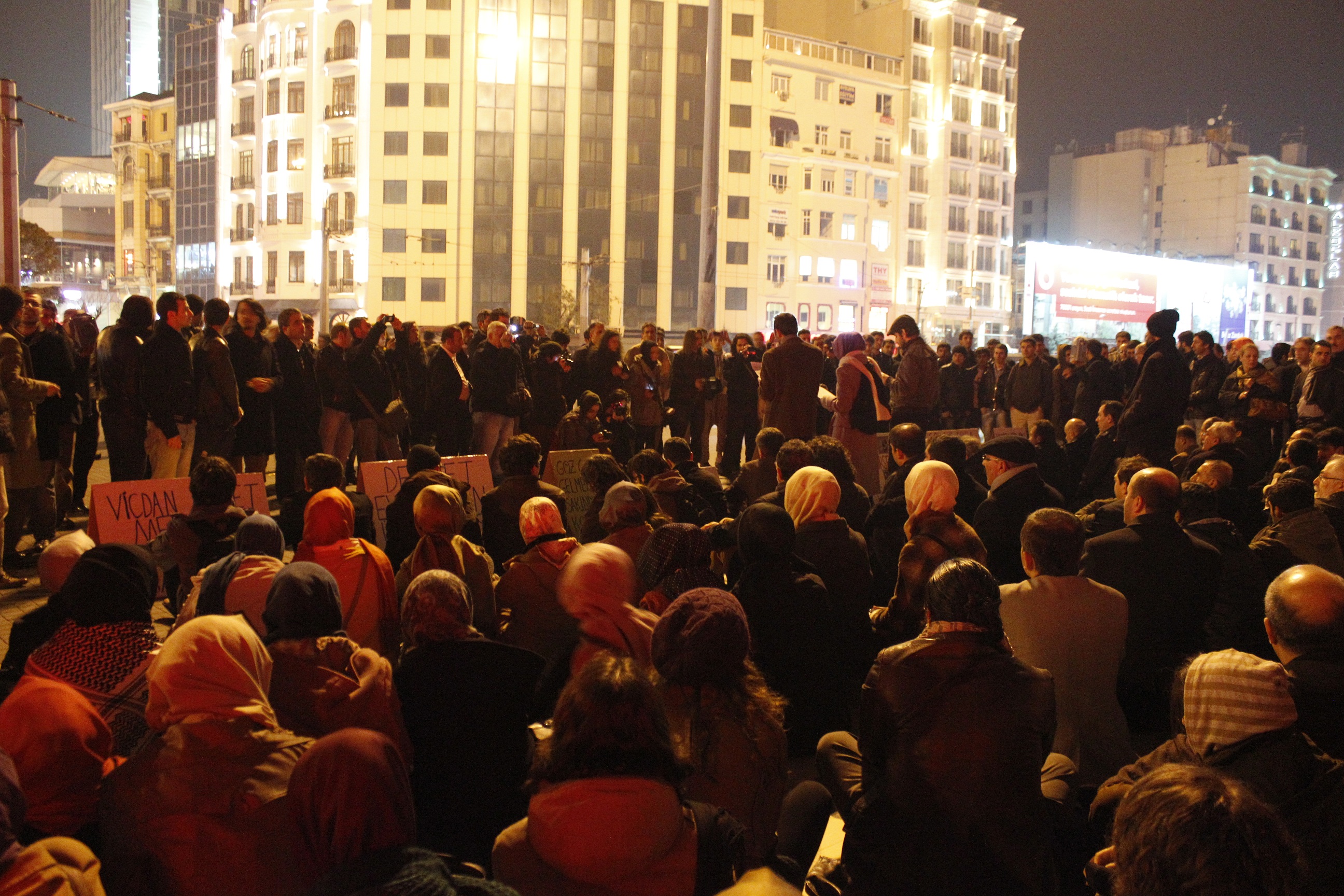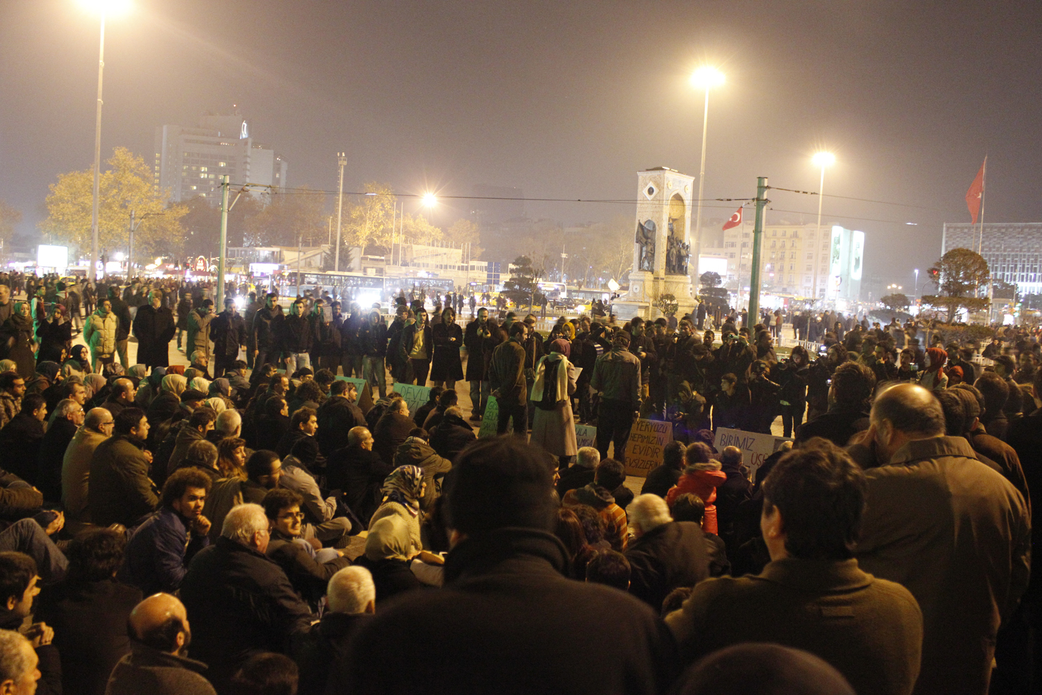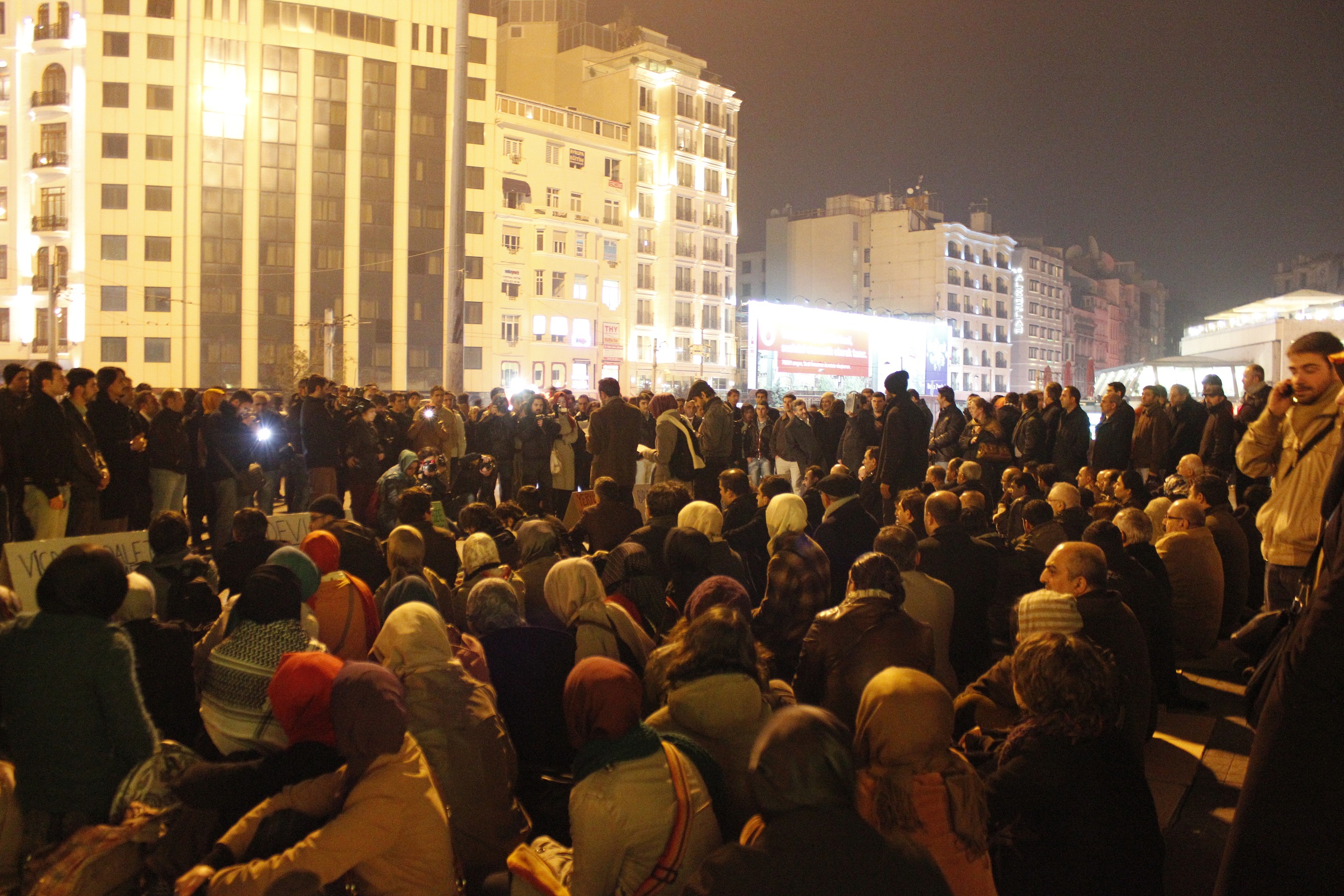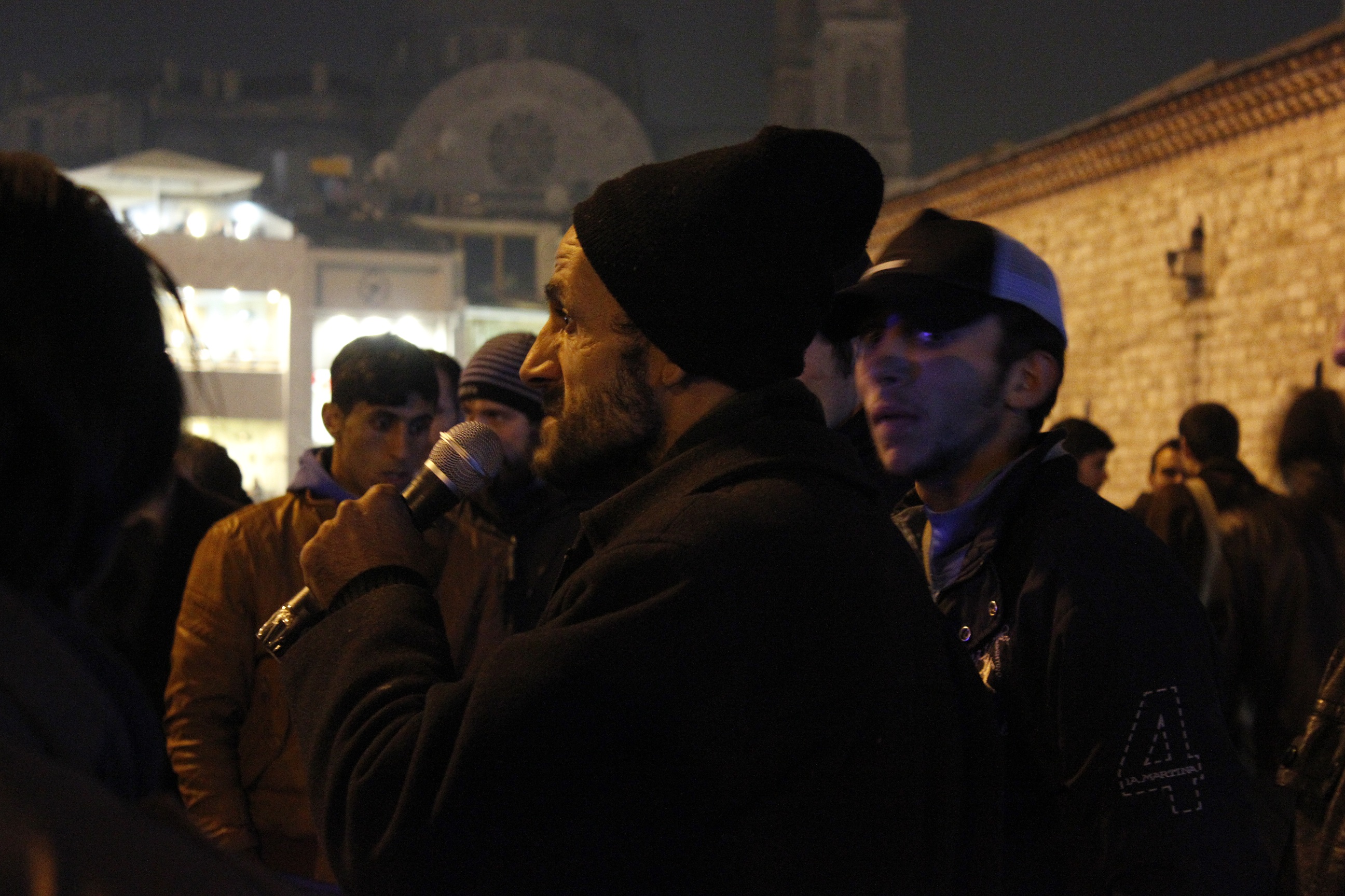 3 Aralık 2011 akşamı saat 20:00’da, önceden ilan ettiğimiz üzere “Birimiz Üşüyorsa Hepimiz Üşürüz” etkinliği için, Taksim meydanında evsiz vatandaşlarımızın sorunlarını kamuoyunun gündemine taşımak maksadıyla toplandık. 300’ü aşkın kişinin katıldığı etkinliğe basın açıklamamızı okuyarak başladık. Basın açıklamasını üç arkadaşımız okudu.