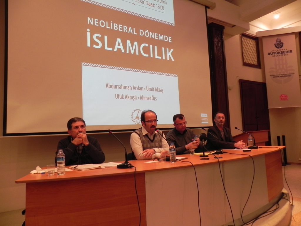 30 Ekim Pazar günü gerçekleştirilen Özgür Yazarlar Birliği’nin düzenlediği Ufuk Aktaşlı, Ümit Aktaş ve Abdurrahman Arslan’ın konuşmacı olarak katıldığı Neoliberal Dönemde İslamcılık paneli verimli geçti. Düzenleyenlerin ellerine sağlık. Her ne kadar üzerimizde bir önceki gece Taksim meydanında evsizler için sabahlamanın verdiği bir yorgunluk olsa da anlatılanlar bizi kendimize getirdi. Ayrıca panelin bir serinin başlangıcı olarak düşünüldüğünü de öğrenmiş olduk. Anlamlı bir seri olacağı muhakkak. Bize hayli önemli geldiği ve söz uçar yazı kalır diye bildiğimiz için notlarımızı, aldığımız ses kaydıyla da besleyip aşağıdaki metni çıkardık. Elbette ki farklı düşündüğümüz pek çok husus da var aşağıdaki notlarda, ancak bu tartışmanın hayırlı ve verimli bir tartışma olduğuna dair hiç şüphemiz yok. Metin konuşmaların notlar ve ses kaydıyla yazıya dökülmüş hali olduğu için de muhakkak ki anlam kaymaları olacak, sözlerin sahiplerinin tam olarak söylemek istedikleriyle nüanslar bulunacaktır. Ancak ciddi bir anlam kaymasına yol açmadığımızı umuyoruz. Emeği geçenlere ve sözün sahiplerine tekrar teşekkür ediyor, dikkatinize sunuyoruz. Faydalanmanız dileğiyle.
