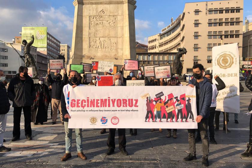 Ankara Ulus’ta bir araya gelen özel sektör çalışanı öğretmenler kendilerine dayatılan yoksulluğa karşı eylem gerçekleştirdi. Geçinemiyoruz yazılı pankart açan öğretmenlerin eylemine Özel Sektör Öğretmenleri Birlikteliği Derneği (ÖSÖB-DER) Birlik Sendikası Özel Okul Öğretmenleri Bürosu, Özel Eğitim ve Rehabilitasyon Merkezi Öğretmenleri Derneği (ÖZRÖ-DER) katıldı[11].