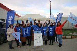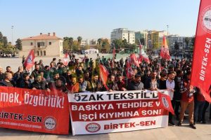 Urfa OSB’de bulunan ve Levi’s markası için üretim yapan Özak Tekstil işçileri, işyerinde örgütlü olan Öz İplik-İş sendikasının patron yanlısı tutumları ve işçiler üzerindeki baskı ve mobbinge ortak olması nedeniyle sendikadan istifa ederek BİRTEK-SEN sendikasına üye oldular. 700 işçinin çalıştığı fabrikada 150 kadın çalışıyor. Kadın işçilerin işyerinde yaşadığı taciz ve baskılar da bu dönemde gündeme geldi, sendika değiştiren kadınlar özel hayatları üzerinden tehdit edildiler. Özak işçisi kadınların yaşadıklarına dair Kadın İşçi’de yayınlanan habere bakabilirsiniz.[2]https://www.kadinisci.org/guncel/fabrikaya-girisimiz-var-cikisimiz-yoktu/ 27 Kasım günü ise BİRTEK-SEN üyesi bir kadın işçi tazminatsız olarak işten atıldı. Bunun üzerine işçiler sendikayla birlikte fabrika önünde direnişe başladılar. Direnişi kırmak için, patronun emriyle Urfa Valiliği eylem yasağı çıkardı, defalarca jandarma işçilere ve sendikacılara müdahale etti, sendika başkanı Mehmet Türkmen darp edilerek gözaltına alındı. Ayrıca direnişi kırmak adına, işveren İŞKUR’dan işçi almaya çalıştı. Birkaç gündür jandarma barikatlerle fabrikaya giden yolu kapatmış durumda. Ama Özak işçileri tüm engellemelere karşı direnişten vazgeçmiyor. İşverene, sarı sendikaya, yerel yönetime, kolluk güçlerine karşı topyekün bir mücadele veriyor.[3]https://www.evrensel.net/haber/504921/ozak-tekstil-direnisinde-8-gun-gozaltina-alinan-birtek-sen-yoneticisi-serbest-birakildi Özak işçilerinin sesini her alanda büyütmeliyiz, üretim yapılan Levi’s mağazalarını eylem alanına çevirmeliyiz.