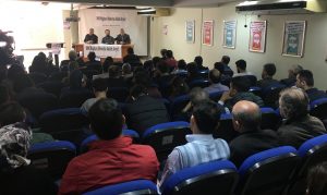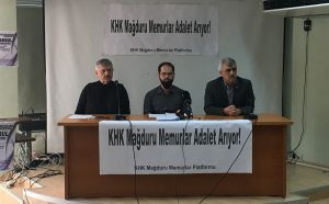 15 Temmuz darbe girişimi sonrası ilan edilen Kanun Hükmünde Kararnamelerle mesleklerinden sorgusuz sualsiz ihraç edilen binlerce memuru, kamu görevlisini temsilen KHK Mağduru Memurlar Platformu bugün bir basın toplantısı düzenledi. Platform adına Ekin Bayraklı, kendileri de KHK ile ihraç edilen Cihangir İslam ve Ömer Faruk Gergerlioğlu’nun da katıldığı basın toplantısında ihraç edilen memurlar taleplerini dile getirdi.