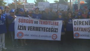 Sendikal haklarını kullandıkları için Türk Telekom taşeronu Kod-A şirketi tarafından işten atılan Kod-A işçileri ve onlara destek veren emek dostları bugün İTÜ Ayazağa kampüsü giriş kapısı önünde eylemdeydi. İlk olarak direnen işçilere destek vermek için alkışlarla başlayan eylemde Tüpraş’ın İzmir rafinerisinde patlama sonucu hayatını kaybeden 4 işçi için 1 dakikalık saygı duruşu yapıldı. İlk olarak konuşan Sosyal İş Sendikası Örgütlenme Uzmanı Cemal Bilgin “anayasal haklarını kullanıp sendikaya üye olan arkadaşlarımız sürgüne başka yerlere gönderildi ve sonra da işten atıldılar, bu hukuk mudur?” diyerek Kod-A şirketinin sendikalaşan işçiler üzerinde uyguladığı baskılara dikkat çekti. ILO toplantısında Başbakan Binali Yıldırım’ın işçilere hitaben “sendikalı olmaktan korkmayın” cümlesini hatırlatan Bilgin “Biz başkanımızın sözünü dinledik sendikalı olduk ancak işten atıldık Başbakanımızı buraya bekliyoruz” dedi.