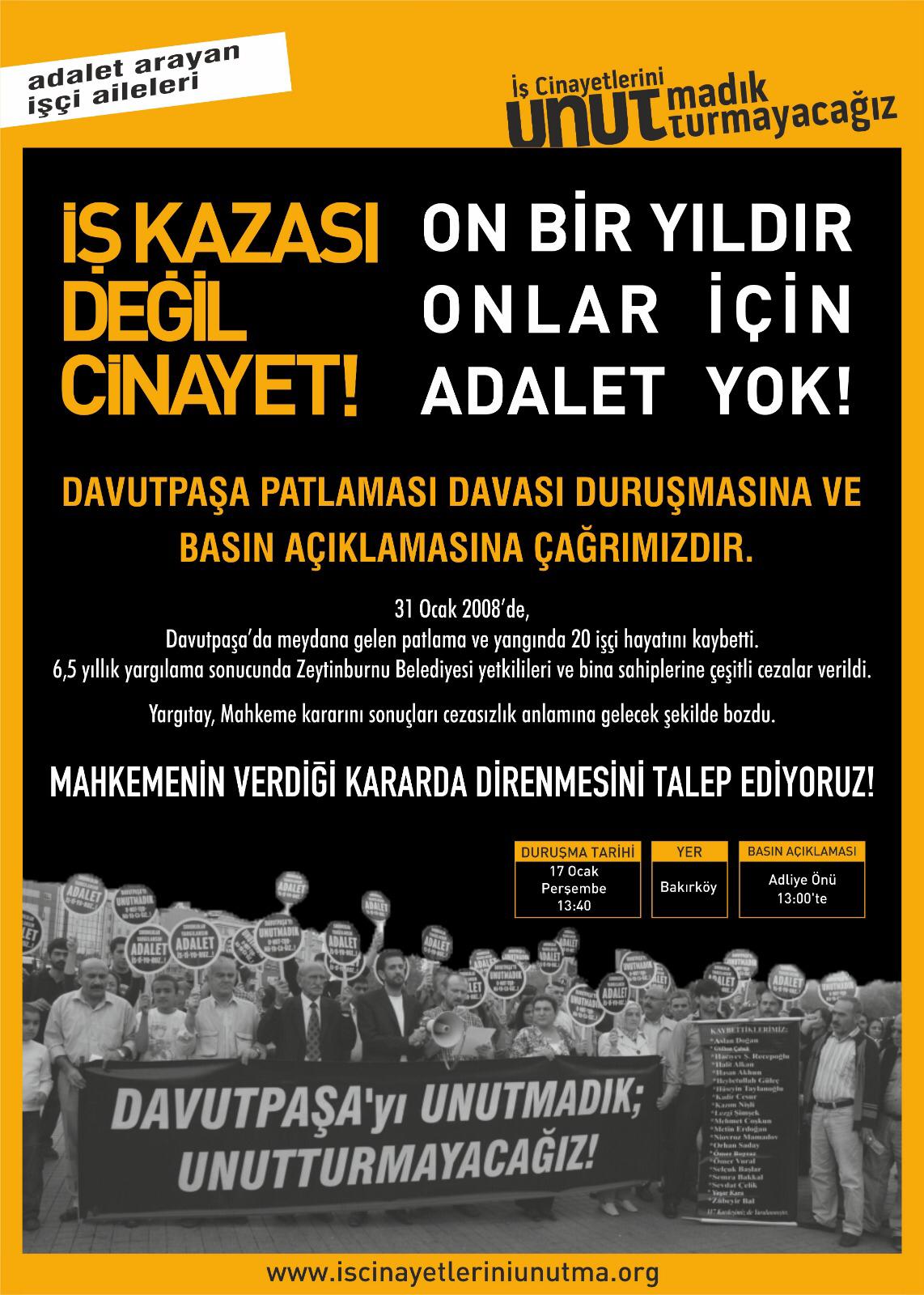 Adalet Arayan İşçi Aileleri olarak 3 Ocak 2016 Pazar günü 13:00’te Galatasaray Meydanı’nda tutacağımız 47. Vicdan ve Adalet Nöbetimize davet ediyoruz.