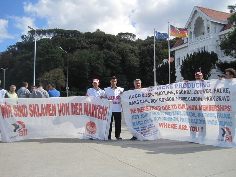 Bu fotoğraflar da Hugo Boss’un anavatanı Almanya’lı işverenlerle ile Türk işverenlerin kurmuş oldukları Alman-Türk Ticaret ve Sanayi Odası önünde Hugo Boss’a yönelik yapılan protestodan.