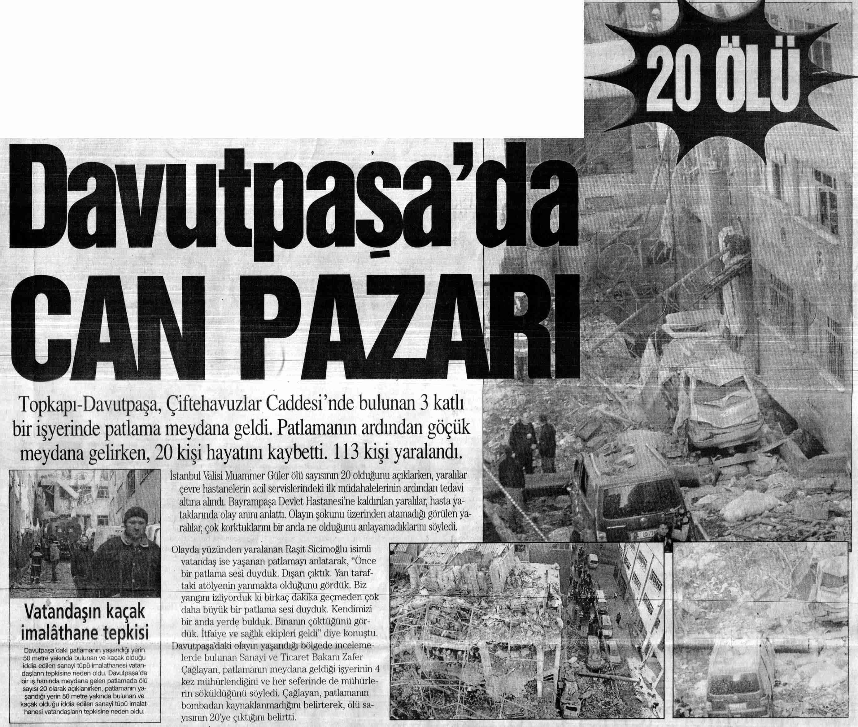 İstanbul’un ortasında, bilmeyenler için söyleyelim Davutpaşa dediğiniz yer Topkapı’dan minibüsle 15 dakikalık mesafede. İstanbul’un ortasında bir “garip” sanayi bölgesi, küçük sanayi ağırlıklı. Devlet kontrolü, iş müfettişi, zabıta vs. buralara pek uğramaz, uğrasa da uğramaz. Patlama olur, koca bir han havaya uçar. 20 kişi oracıkta can verir. O hanın yanındaki binada iki arkadaşım çalışıyordu, yine ufak bir atölyede. Bazı geceler vardiyada olduklarında denk getirince yanlarına gider, sohbet ederdik. O gün ne kadar korktuğumuzu hatırlıyorum. Olayın akşamında koşup, karşılaştığımız manzarayı da. Havaya uçmak deyimini o gün anladım. Kocaman işhanı gerçekten havaya uçmuştu. 20 kişi öldü gitti. Hemen hepsi o küçük atölyelerde ekmeğini kazanma derdinde insanlar. Yargılama ne oldu, kim ceza aldı, sorumlulardan hangisine ne oldu derseniz, ölenlerin yakınları veryansın ediyor: “Hükümette de muhalefette de takip sıfır. … Artık yeter, diyoruz. Çaresi yok, sorumlular hem de eksiksiz olarak yargılanacak.” İnşallah demekten fazlası elimizden gelmiyor.