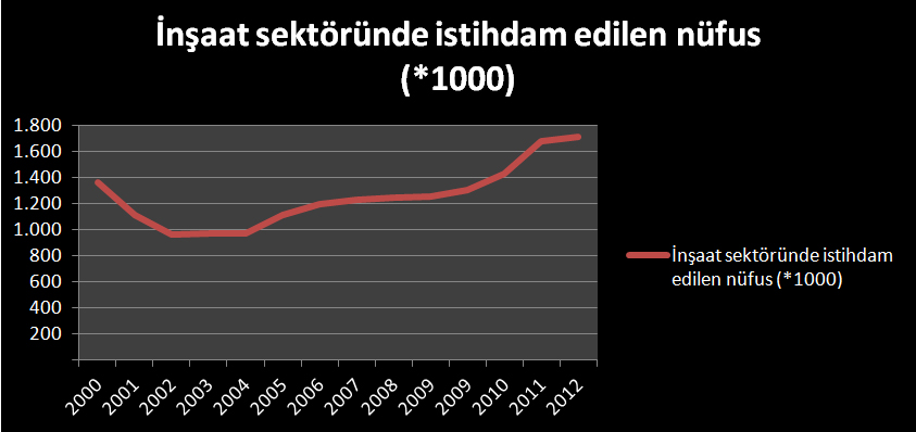 bir de işsizlerin oransal değil, nominal değerlerine baktım, hazır açmışken. 2012’de yıllık işsiz sayısı 2518 bin. 2009’da ise 3471. aradaki fark 953 bin. senin tabloya göre aynı dönemde inşaat istihdamı 1.2 milyondan, 1.7 milyona yaklaşmış, 500 binlik bir artış. yani aynı dönemde işsizlikte azalmanın yaklaşık yarısı inşaat sektörü sayesinde olmuş. söylediğin gibi çok ciddi bir ilişkisellik.