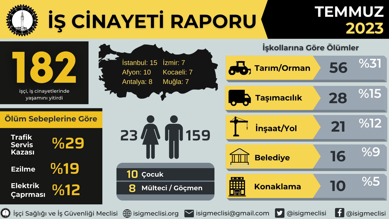 Temmuz ayında en az 182 işçi hayatını kaybetti.