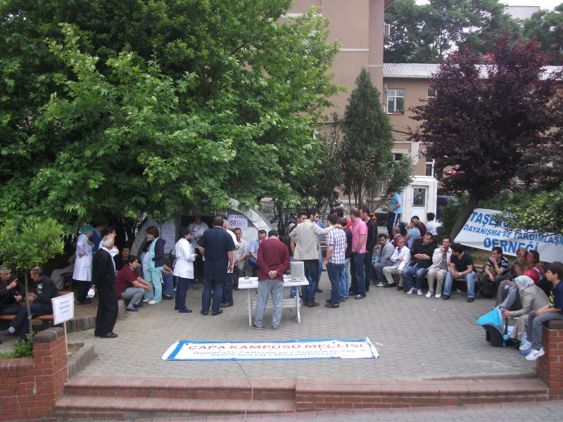 Daha önce meslekli olarak tabir edilen; üniversite mezunu olan ve hemşire, laborant, teknisyen, biyolog vb. olarak çalışanlar arasında böyle bir işten çıkarma olmuştu. Bu işten çıkarmayı önceden tahmin edip çadırını kuran Taşeron İşçileri Dayanışma ve Yardımlaşma Derneği TAŞİŞDER’in direnişte 101. günü.