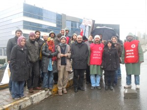 K: Tabii, yurtdışından parçalar geliyor, montajı yapılıyor, yazılımları kurulup testleri yapılıp gönderiliyor, üretim bölümü oluyor orası. Ama bunun bir de lojistiği, teknik servisi var ki orada da 45 eleman var. Ben 15 yıllık elemanım. Ben, bu arkadaş, öbür arkadaş, biz ta Mecidiyeköy’deki ufacık bir daireden başladık, ilk gittiğimizde oturacak tabure yoktu. Teknik servisteyim ben, bölüm sorumluluğu filan da yaptım.Örgütlenmeye niye başladık? Hakkımız olanı alabilmek için hem ücret hem de sosyal imkanlarbakımından. Düşük ücretler, geç yatan mesailer, müdürlerin direktörlerin eline bırakılmış işçiler. Kısacası hem güvenceli hemde hakettiğimizi alarak çalışmak istedik. Patron şirketin % 27 büyüdüğünü açıklarken, 2010 başında çok komik zamlar verildi. Bu kadar büyümek karşılığında geç verilen zamlar.İki ay geç verildi çünkü zam ve çok komik olan zamlar, küfreder gibi.