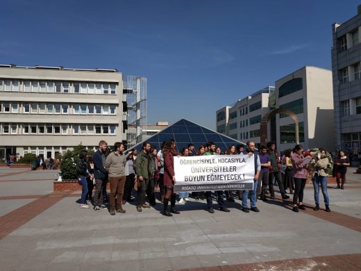 Boğaziçi Üniversitesi öğrencileri bir sene önce Cumhurbaşkanı Erdoğan’ın “Bu komünist gençleri okutmayacağız” açıklaması üzerine üniversite içinde birçok gözaltının ve tutuklamaların yaşandığı “Afrin lokumu hadisesi” ile ilgili bir basın açıklaması düzenlediler. Gerçekleştirilen basın açıklamasında Barış...