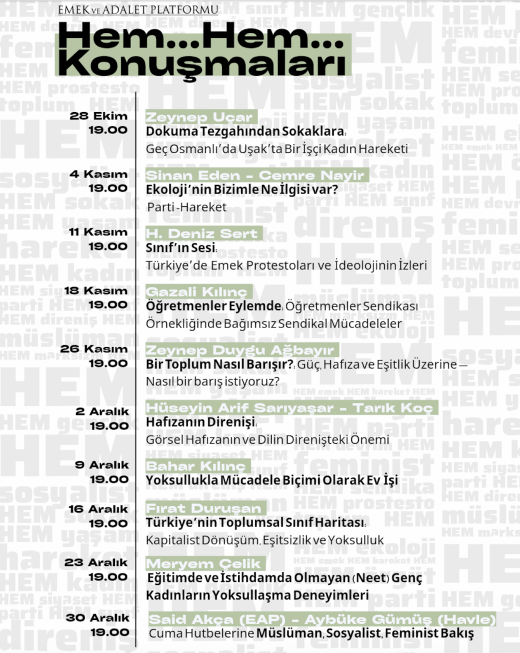 Kültürel kamplara sıkışan ve ezilenlerin sözünü boğan siyaseti tersyüz etmek için Emek-Adalet olarak yerleşik temsillerin ötesine geçmeye; sınıfın, kadınların, ezilenlerin sesini duymaya ve duyurmaya; dayanışmayı ve mücadeleyi konuşmaya davet ediyoruz. Türkiye’nin siyaseti uzun zamandır...