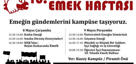 Boğaziçi Üniversitesi öğrencilerinin 2009’dan beri her yıl Mayıs ayında gerçekleştirdikleri Emek Haftası, “Emeğin gündemlerini kampüse taşıyoruz” mottosuyla 10. kez yapılıyor. Bir açıdan geçen yılın ve hali hazırda devam eden işçi direnişlerinin haritası anlamını da...